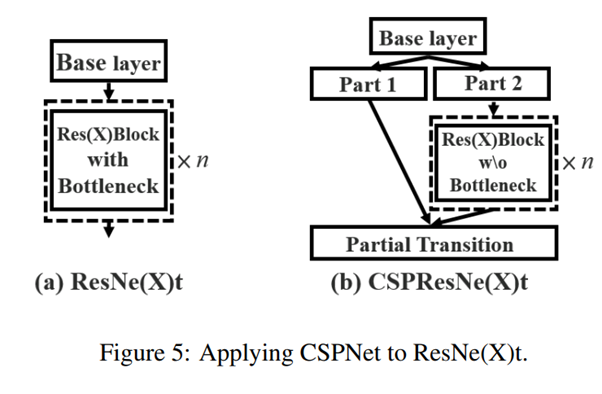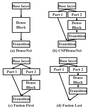 1. CSPDenseNet에 사용한 방식 두 갈래로 나누어진 경로에 하나는 Dense Block과 Transition layer를 지나고 그 뒤 두 갈래를 concatenate 한 후 다시 transition layer를 통과한다